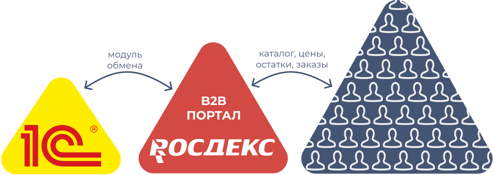 Модуль обмена с 1С передает на ваш b2b-портал актуальный каталог товаров, цены, остатки. Оптовые покупатели 24/7 формируют на b2b-портале заказы, которые, в свою очередь, возвращаются в 1С в форме документа "Заказ покупателя".